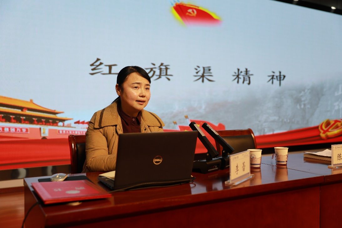 李蕾为我校师生作红旗渠精神专题报告。她从红旗渠、红旗渠人、红旗渠精神及其价值影响、当代启示等方面,通过详实的数据、动人的故事,热情讴歌了英雄儿女的坚韧与担当,生动还原了林州儿女逢山凿洞、遇沟架桥苦干十个春秋的艰苦历程,激起了在场师生的强烈共鸣。最后,她寄语同学们要永远高擎精神之旗前进,摒弃骄娇二气,自信自励,想干敢干能干真干,让青春在创新创造中闪光发亮!