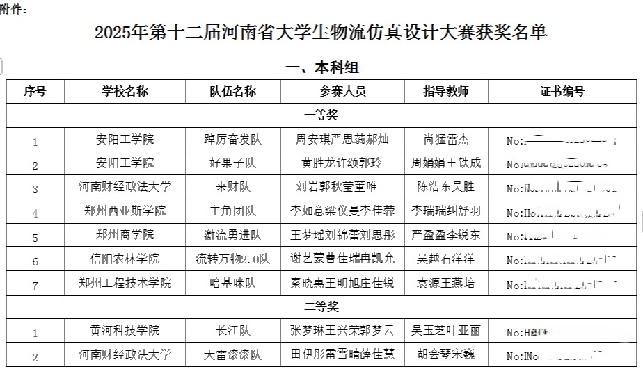 近日,第十二届河南省大学生物流仿真设计大赛在郑州落幕。该赛事由河南省高等教育学会主办,是省内物流教育领域颇具影响力专业学科赛事,全省约70支本科院校队伍同台竞技。