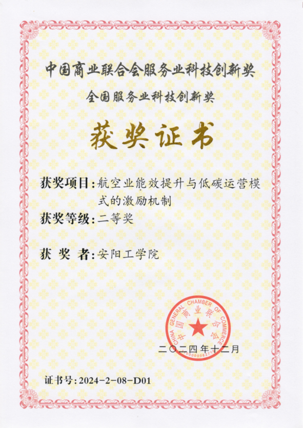 近日,中国商业联合会正式公布全国服务业科技创新奖获奖名单,我校申报的“航空业能效提升与低碳运营模式的激励机制”项目获二等奖。