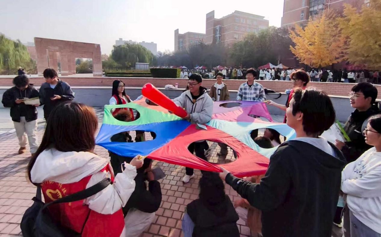 11月5日,我校举办2025年度心理健康教育宣传周主题宣传日活动,校本部16个学院和洹滨校区共计3000余名师生参加,副校长闫春岭现场指导并体验活动。