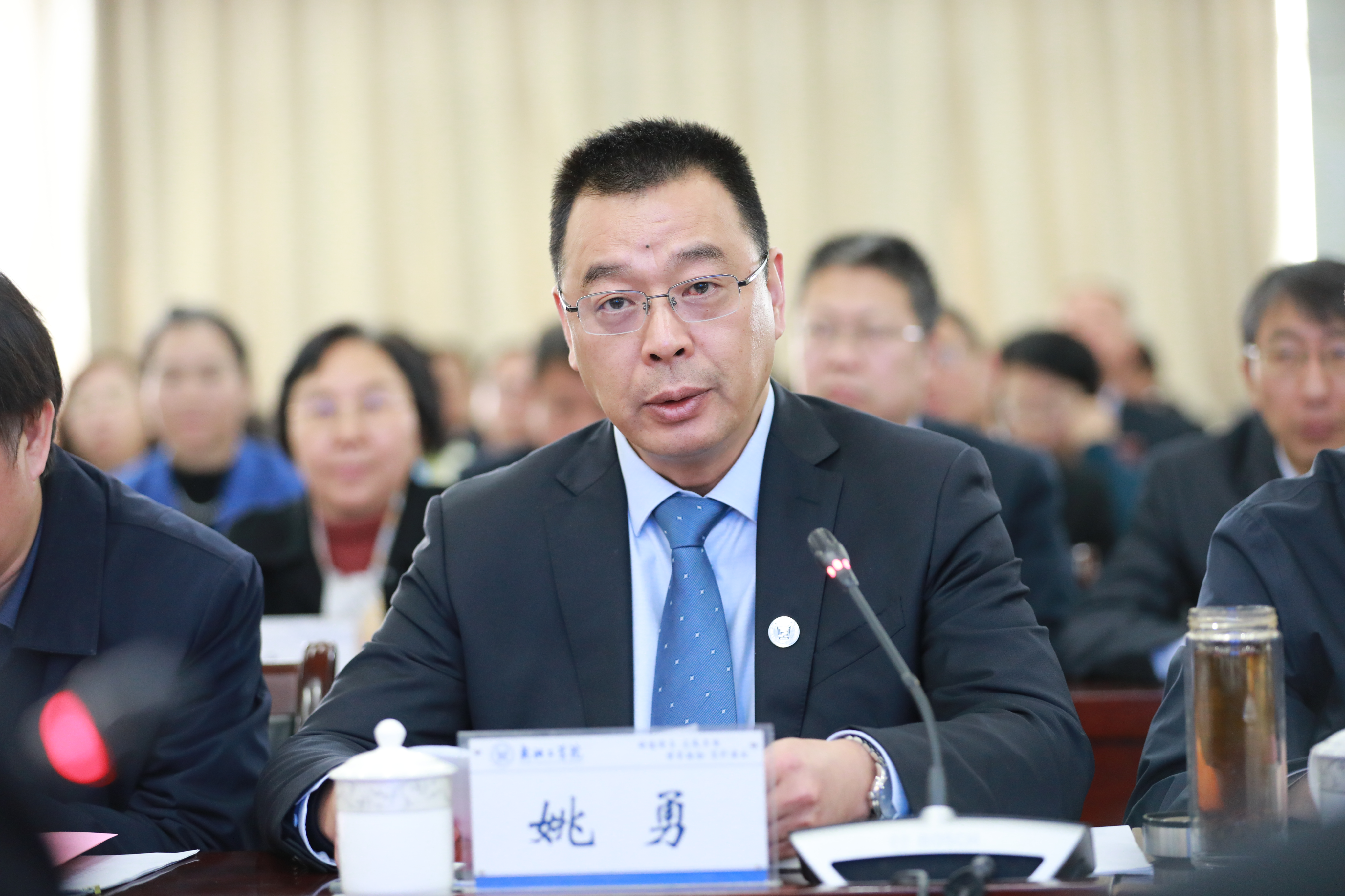 姚勇代表学校作表态发言。他首先对专家组的辛勤工作和悉心指导表示最崇高的敬意和最衷心的感谢。他表示,评估期间专家组对学校本科教育教学工作开展了全方位、多视角、系统化、全链条的会诊,对学校教育教学工作提出的意见,既肯定成绩,又指出问题,既分析原因,又开出良方,具有很强的针对性、指导性和前瞻性,为学校找准问题、改进工作提供了重要指引。对于专家组的反馈意见,完全赞同、诚恳接受、照单全收。学校将以高度的政治自觉,全面梳理反馈意见;以严谨的系统思维,科学制定整改方案;以坚定的改革决心,确保整改落地见效;以开放的办学姿态,持续巩固评估成果。学校将以此次评估为新的起点,进一步完善内部质量保障长效机制,持续巩固和深化评建成果,促进办学特色更加鲜明、改革更加聚焦、管理更加高效、发展更加强劲,为服务国家战略和区域经济社会发展培养出更多德智体美劳全面发展的优秀人才。