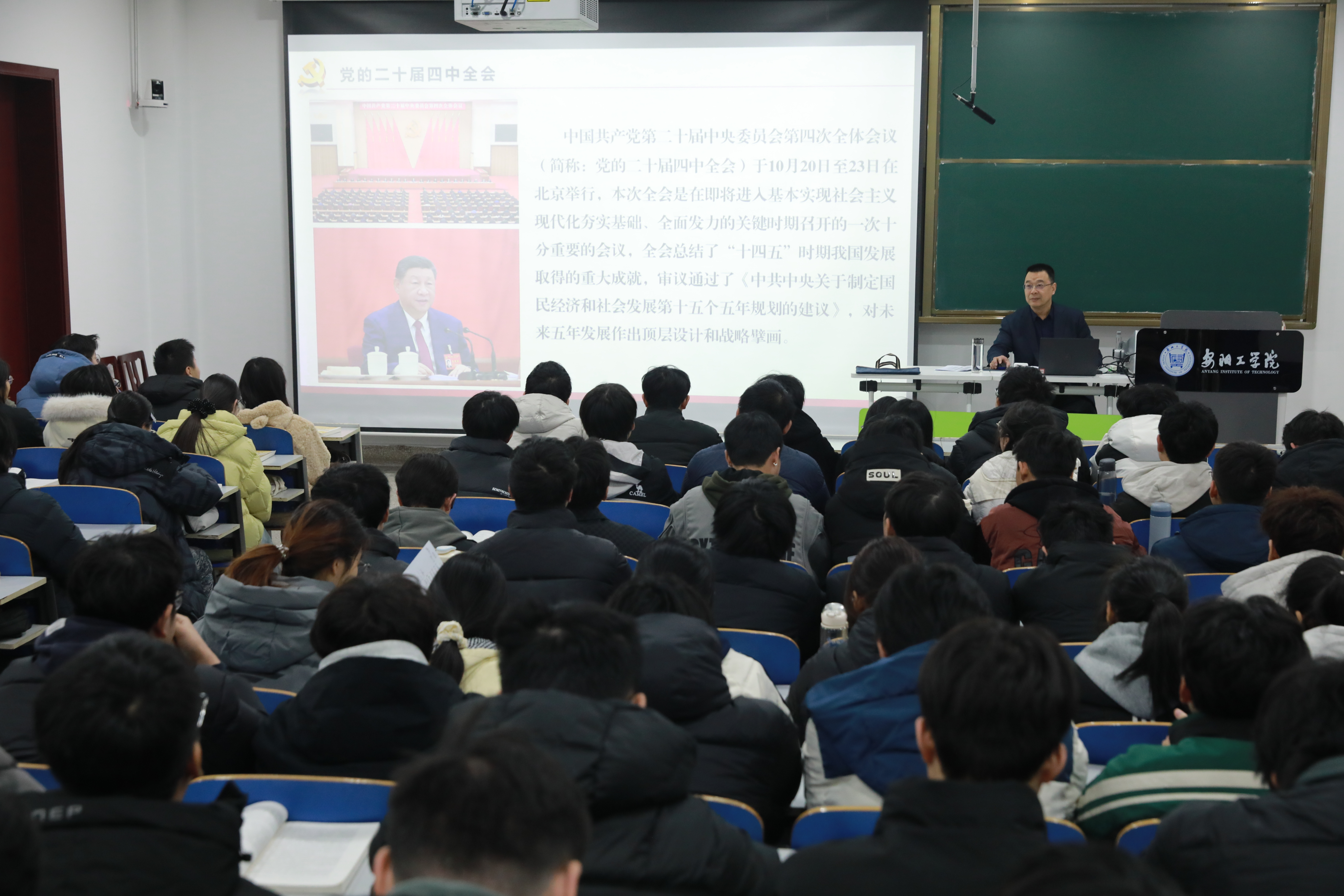 课上,姚勇围绕党的二十届四中全会精神有关内容,深入浅出、生动细致地阐述了“五年规划”是中国之治的突出优势、“十四五”时期国家经济社会发展取得的重大成就、“十五五”时期国家和我省经济社会发展的目标任务、大学生在新时代新征程为中国式现代化建设贡献青春力量等四个方面问题。