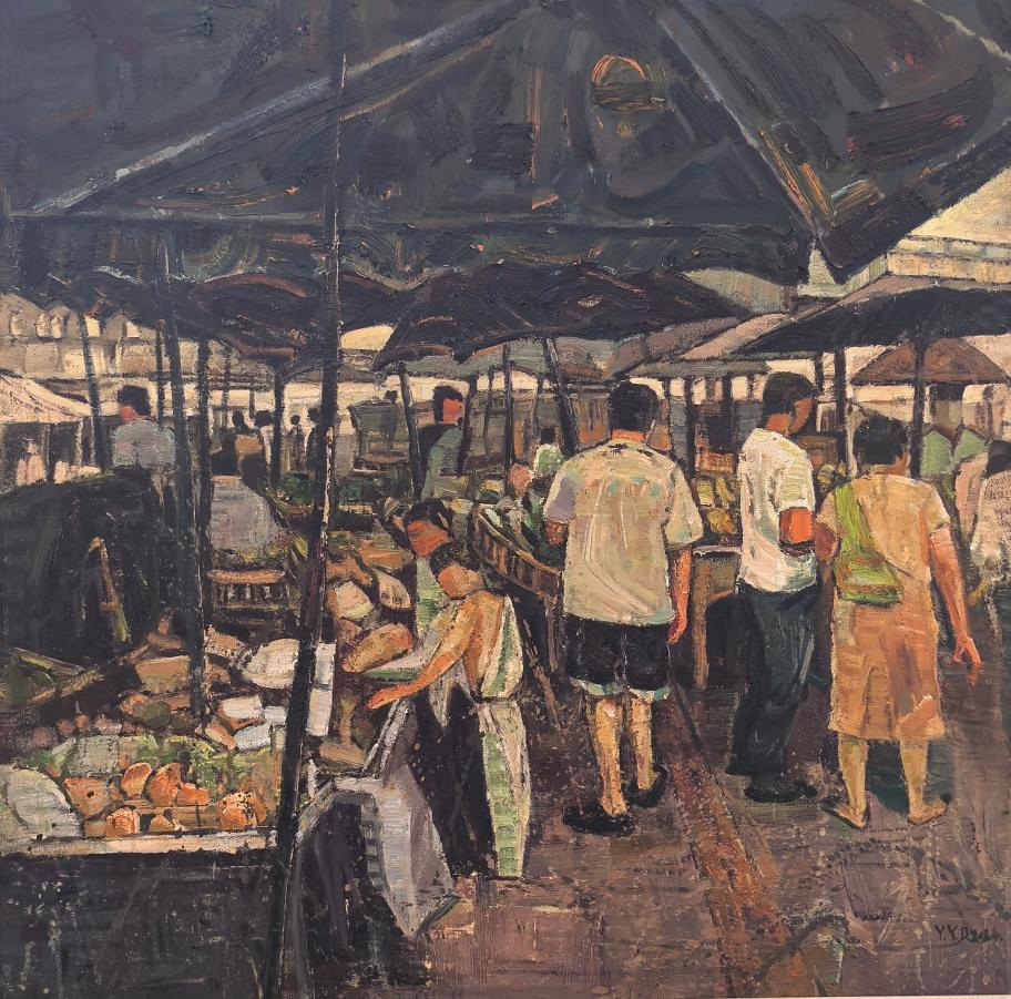 杨怡丁《人间烟火系列之农闲集市》80x80cm 布面油画(获奖作品)