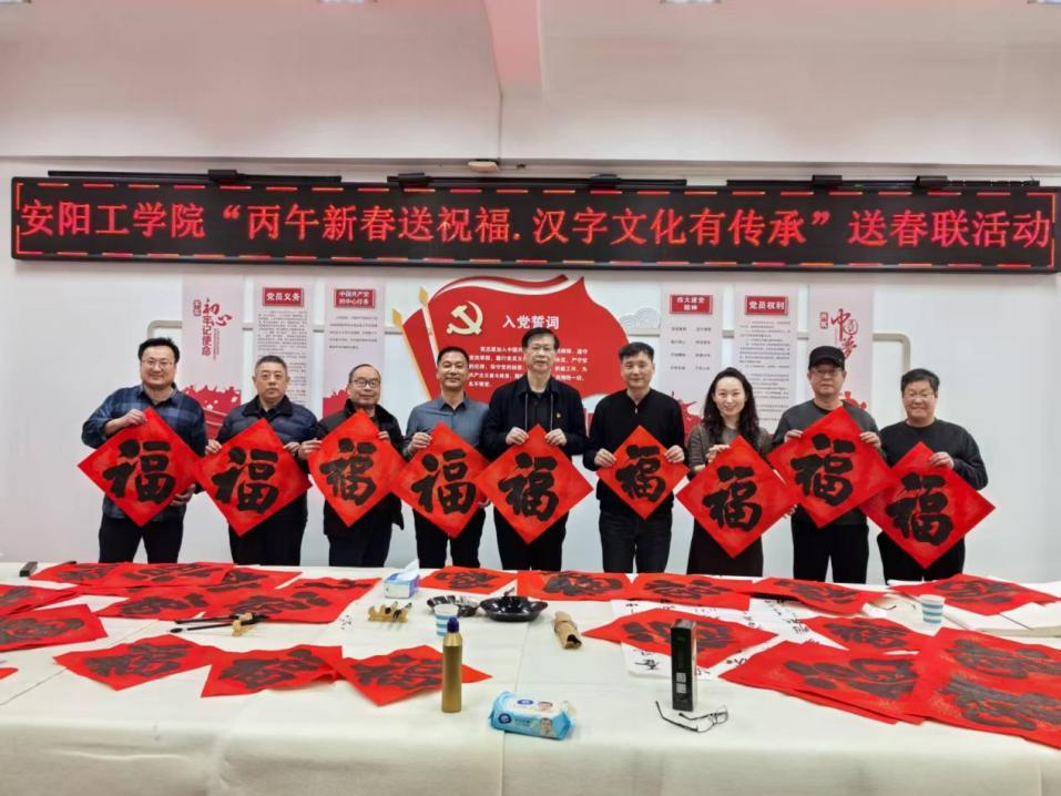 为弘扬中华优秀传统文化,营造喜庆祥和的节日氛围,近日,由校工会和公共艺术教育教学部联合主办的“丙午新春送祝福,汉字文化有传承”义写春联活动在B02-311举行。校党委副书记牛瑞庆出席,我市部分书法名家应邀参加活动。