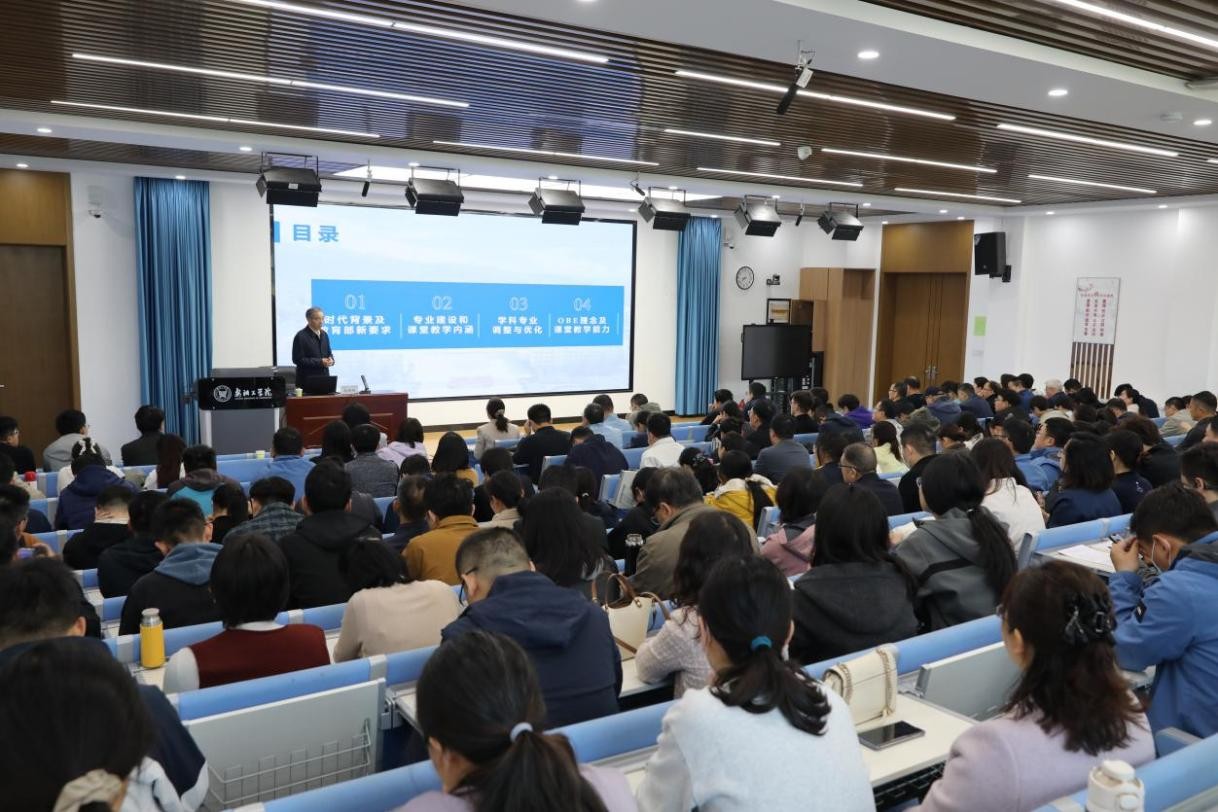 李树刚教授系统阐释了专业建设与课堂教学的核心内涵,深入剖析了当前学科专业调整优化的核心思路与实践路径。他重点分享OBE理念下以学生为中心、以学习成果为导向的教学改革经验,强调推动课堂教学从“知识传授”向“能力培养”转型。结合我校办学实际,他围绕深化产教融合、推进专业动态调整、探索微专业建设、运用AI技术赋能课堂教学等提出具体建议,互动环节中耐心解答教师各类提问,现场交流氛围浓厚。