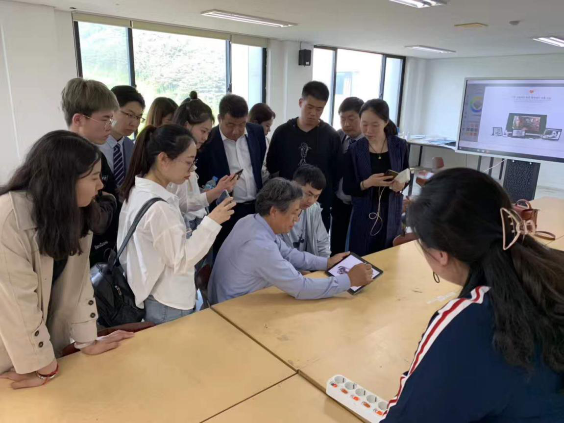 研讨会上,我校师生与来自韩瑞大学设计娱乐多媒体学院的60多名师生展开了热烈讨论。两校参会部分老师和学生分别介绍了各自作品的设计起因、设计理念和市场前景,研讨会气氛活跃,互动交流充分,受到与会人员好评。会议期间,我校师生还参观了该校设计娱乐与多媒体学院工作室及泰安机场校区和瑞山校区。