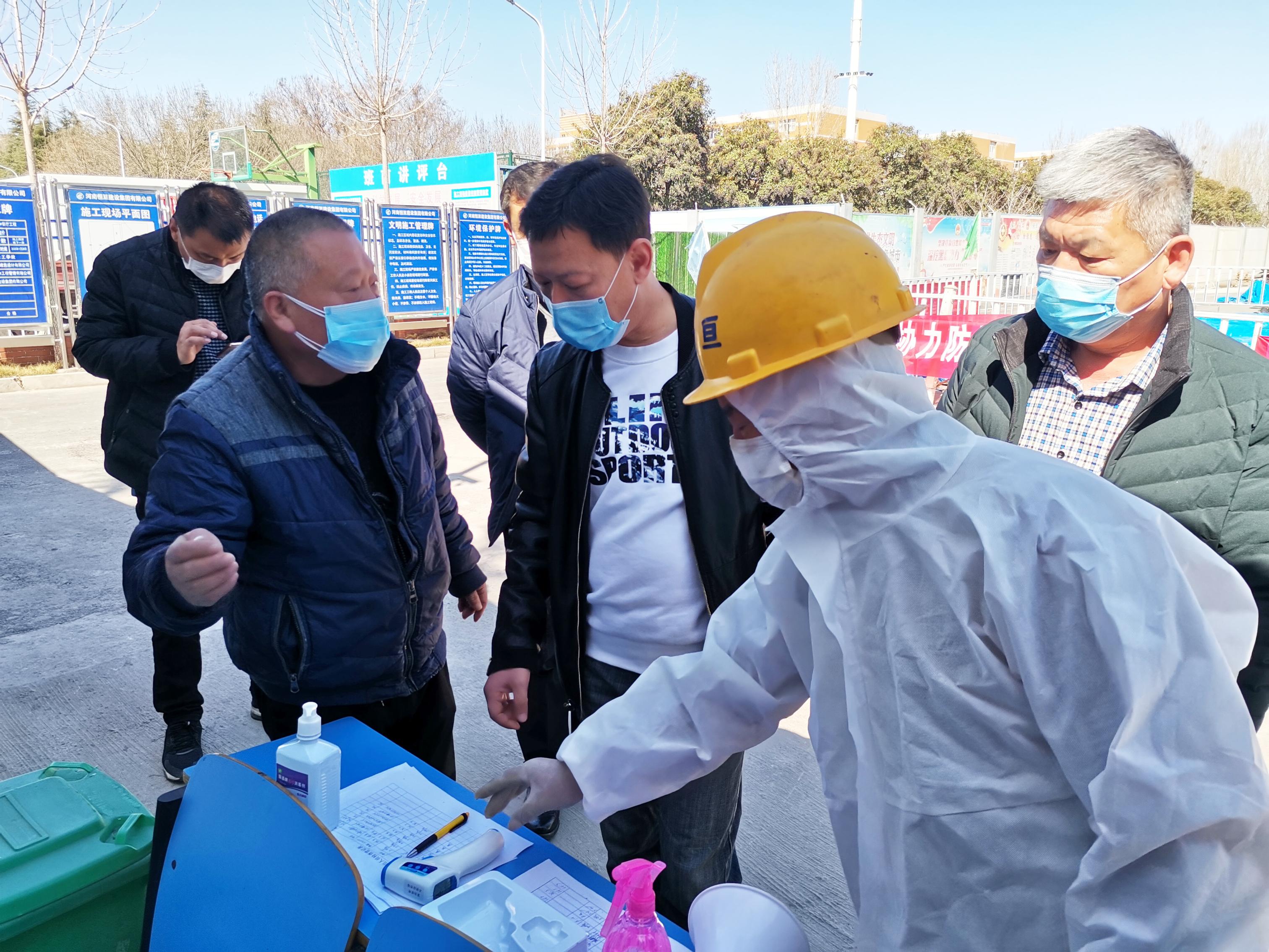 复工复产以来,各项目施工单位认真做好消杀防疫工作,切实保障施工人员生命健康;一是为施工人员办理临时出入证,严防无关人员出入;二是按规定要求施工人员佩戴口罩,做好个人防护,每日进行健康申报,每日进行两次以上体温测量;三是每天对办公区和施工区进行两次以上喷洒消毒,有效阻断疫情传播,切实保障正常的工作生产秩序。
