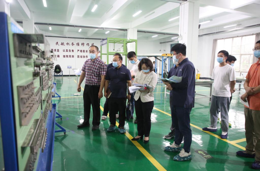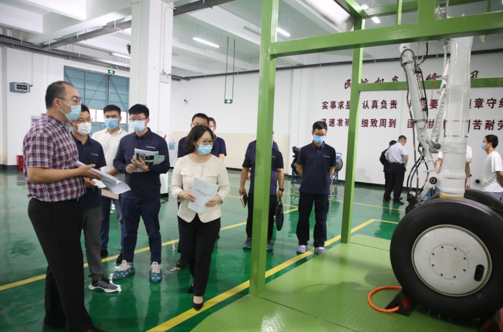 在我校CCAR147飞机维修培训中心,赵燕莉一行实地查看了有关机务维修的场地环境、设施设备、人员配置、操作流程、培训手册、教学课件等,并与学校领导、现场工作人员进行沟通交流,详细了解了有关工作的开展情况。