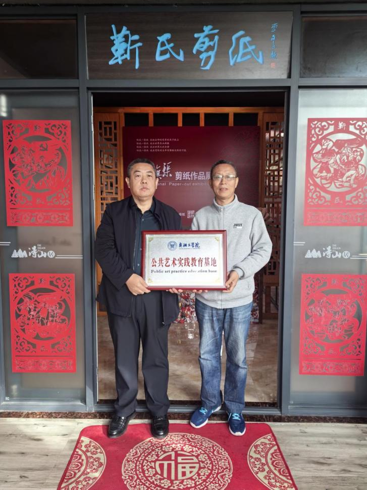 近日,公共艺术教育教学部组织部分师生赴非遗项目----靳氏剪纸代表性传承人靳林峰剪纸工作室开展艺术实践活动,并授予“安阳工学院公共艺术实践教育基地”牌匾。