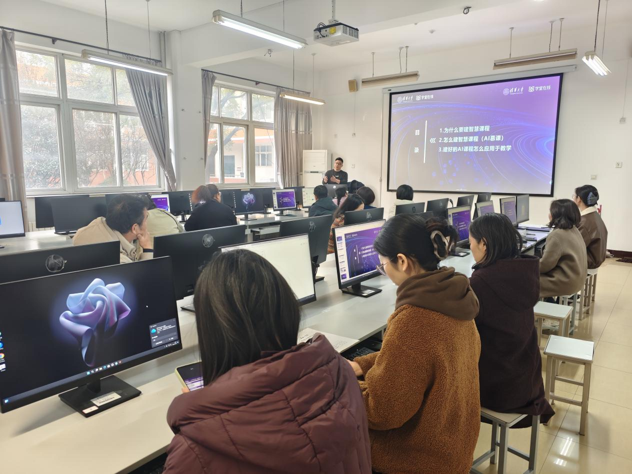 刘杰围绕“基于雨课堂的智慧课程建设及AI教学应用”,详细讲解了如何将课程快速对接大模型以实现智慧升级,并现场演示了课程专属知识库构建、“24小时学伴”答疑、智能备课等核心功能。重点介绍了基于雨课堂与PPT的轻便式AI教学全场景应用,为教师们提供了高效、易用的课堂实践方案。培训内容详实,针对性强,有效拓宽了教师们在AI教育应用方面的视野。与会教师纷纷表示,将积极把所学技能融入日常教学,共同推动学院智慧教学水平迈向新台阶。