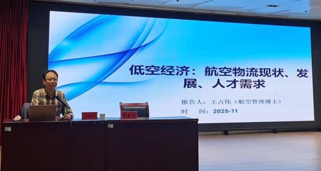 11月27日下午,商学院邀请山东航空学院王占伟博士到校为师生作了一场题为《低空经济:航空物流现状、发展、人才需求》的报告。商学院副院长冯志波主持报告会。