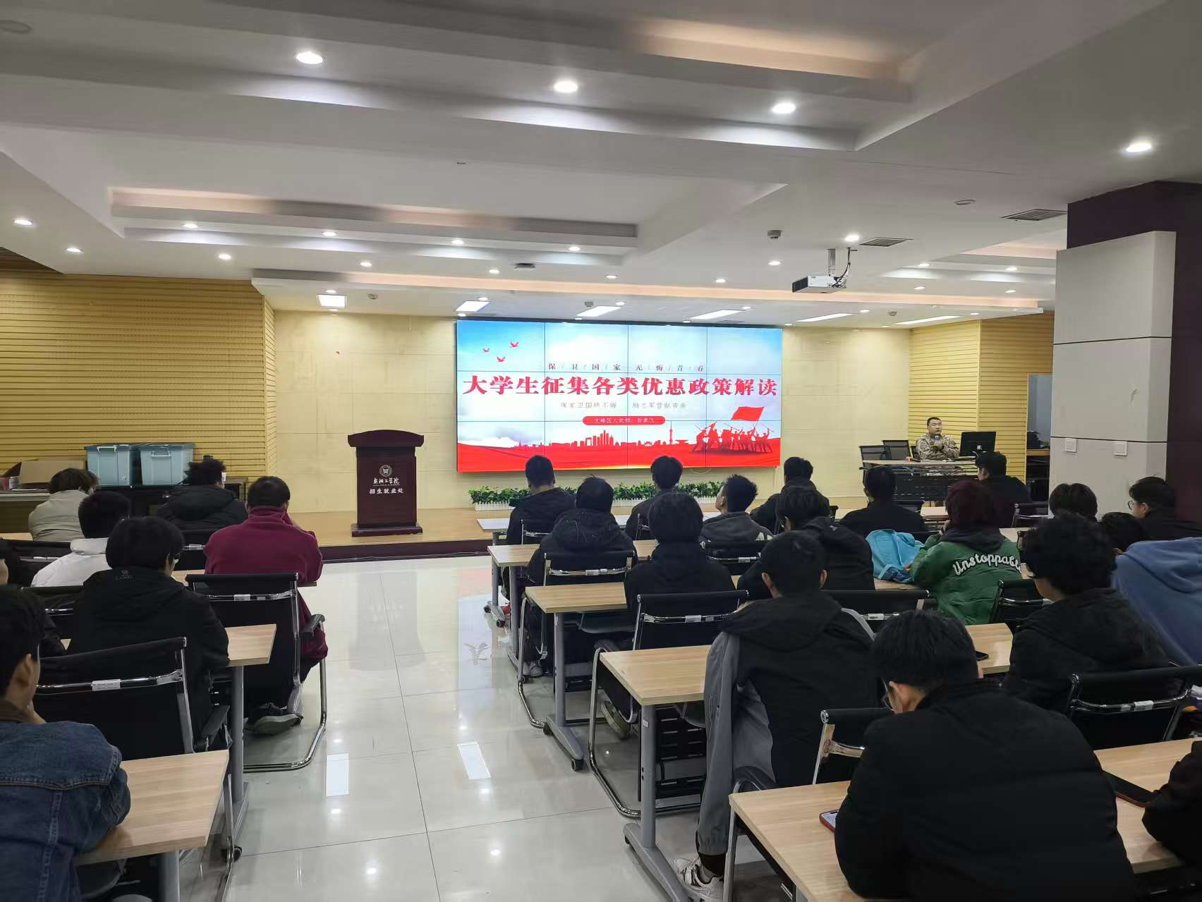 11月28日下午,文峰区人民武装部军事科孙素飞来校,在B02-215报告厅开展征兵政策解读专题讲座。