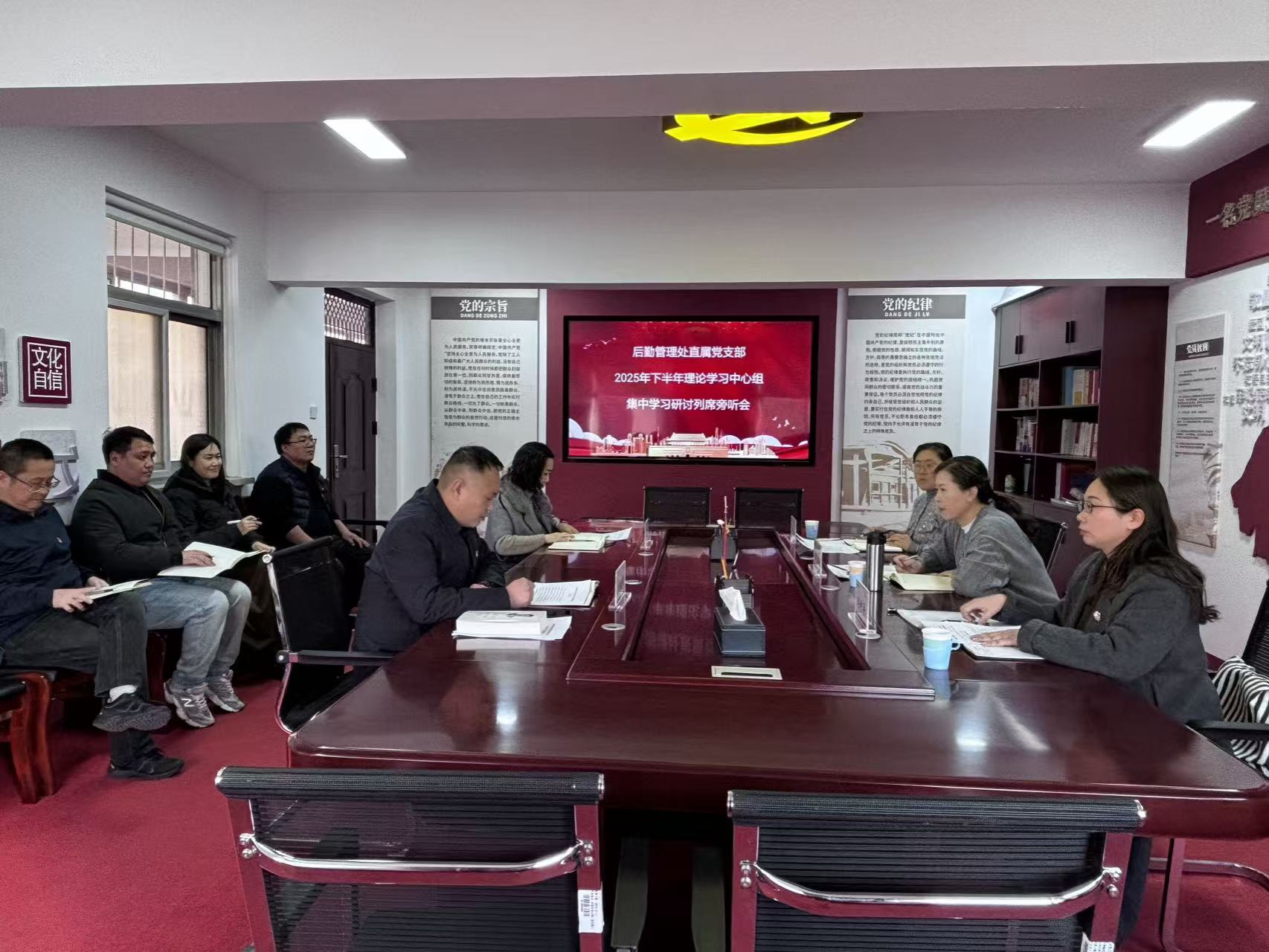 12月5日,后勤管理处直属党支部理论学习中心组专题学习党的二十届四中全会精神。直属党支部书记刘韶晖主持会议,中心组成员参加会议,学校第二列席旁听指导组列席。