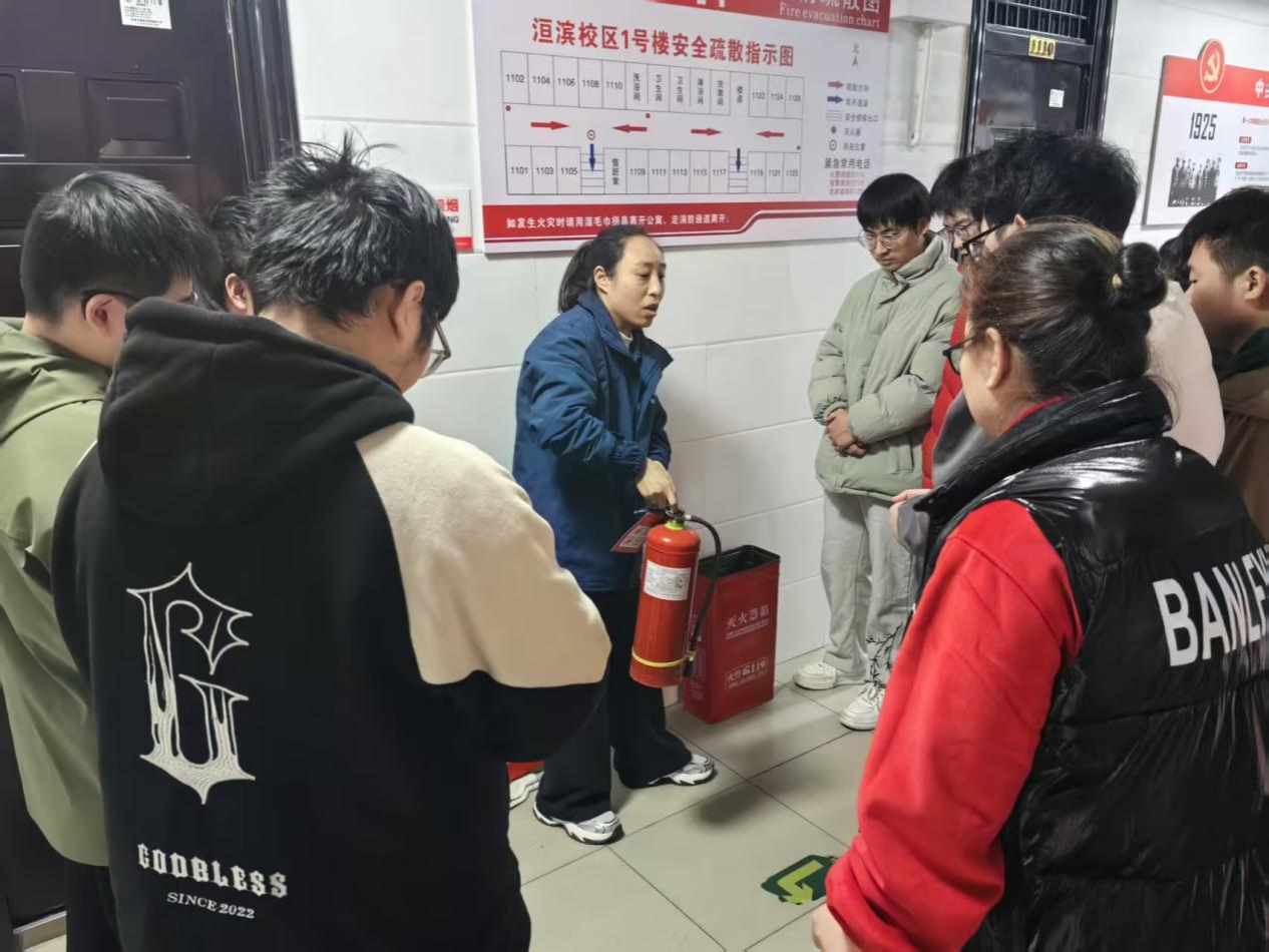洹滨校区、明德书院召开专题会议,细化分工、明确责任,并对宿舍、实验室等重点区域展开全面消防安全检查,确保设施完好、通道畅通。期间,组织宿管员现场讲解、手把手演示灭火器操作,开展模拟火情疏散演练,让同学们在亲身体验中掌握灭火器具使用与逃生要领。另外,还通过消防主题班会、知识竞赛等形式,让消防安全知识真正入脑入心。
