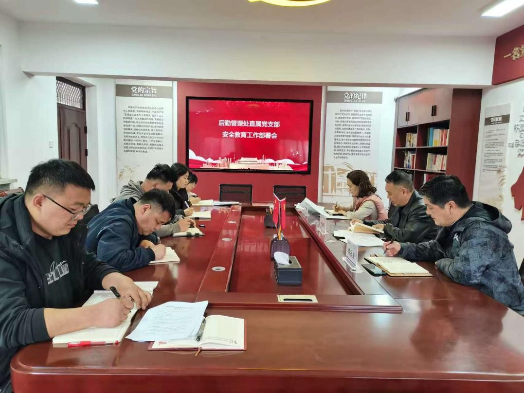4月8日上午,后勤管理处直属党支部召开安全教育工作部署会,后勤各科室负责人参加会议,直属党支部书记刘韶晖主持会议。